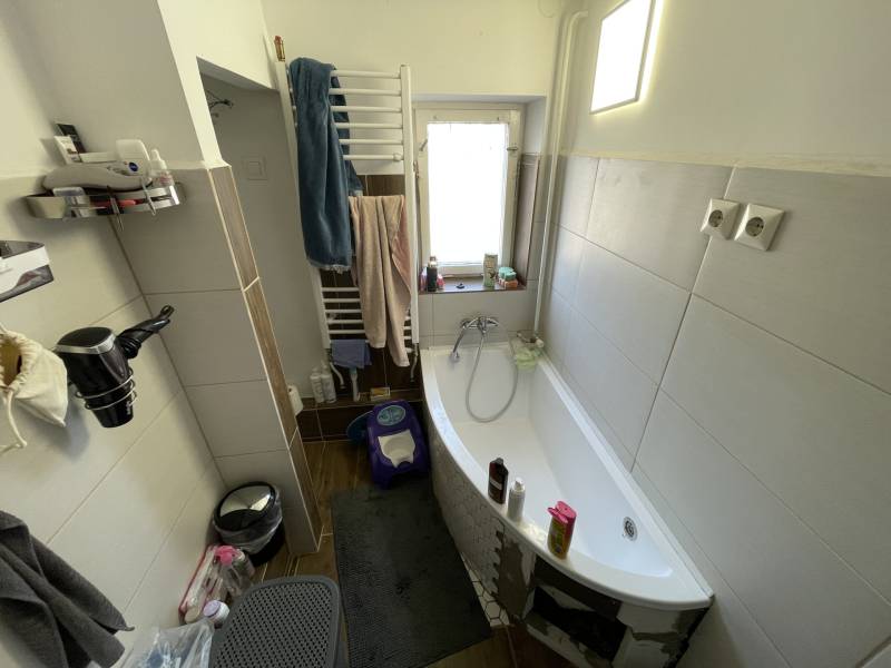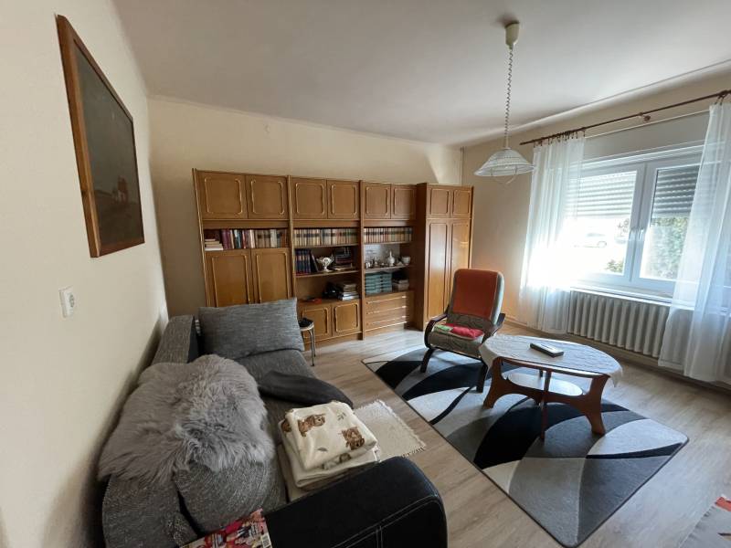 Szekszárd Újvárosban részben felújított, bővített kockaház eladó!Az alap egy 10 méter x 10 méteres Kádár-kocka ház téglából. A bővítés ennek tetőtér beépítésével történt, ahol egy külön lakrész lett kialakítva. Ennek megközelítése egy lépcsőn lehetséges, amit a tájékoztató jellegű alaprajzon is jelöltem.Felújítások közül kiemelném: - alsó szinten minden ablak és az egyik bejárati ajtó műanyagra cserélve ( másik bejárati ajtó jó minőségű fa) - 10 cm vastag hungarocell hőszigetelést kapott a ház - villanyvezetékek újak a felső szinten teljesen, az alsó szinten a lakószobákban- Vaillant gáz-cirkó kazán lett beépítve pár éve, kémény bélelve (plusz opcióként a konyhában vegyes tüzelésű kályha is rendelkezésre áll külön kéményben) - új szennyvíz csövek, két tisztítóval- konyhabútor, burkolatok mindkét szinten elfogadható állapotúak- cseréptető, eresz bádogozása, ragalj rendbenTartozik a házhoz az alsó szinten fedett terasz, a tetőtérben pedig a legnagyobb helyiségből szintén nyílik egy terasz. A fedett terasz mellől jutunk le a szuterénbe, ahol a gázkazán és tároló helyiségek találhatók. Az udvar végén egy gazdasági épületként nyilvántartott 2 beállós garázs és tároló helyiségek vannak. Az udvar nagy része füvesített, gyümölcsfákkal, az utcafront felől tujákkal elszeparálva. A garázsig zúzott köves út vezet. A ház végig aszfaltos úton megközelíthető. Sok parkolási lehetőség adott az udvarban és a ház környékén is. 5 perc sétával buszmegállók is megközelíthetők. Iskola, orvosi rendelő szintén gyalog 5 perc alatt elérhető. Ha meggyőztek a képek és a leírás, nézzük meg a házat együtt! :)